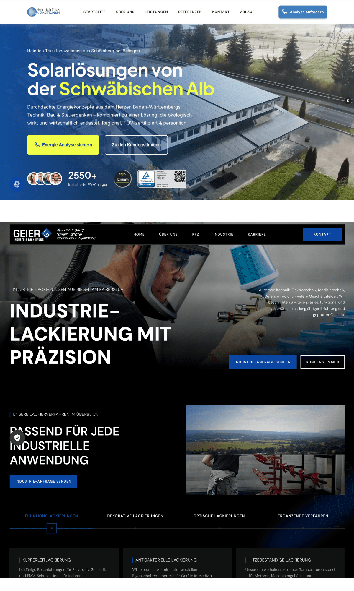 Vorher: Kaum sichtbar, keine klaren Anfragen. Schon nach wenigen Wochen mit der neuen Webseite rufen Kunden an, die wissen was sie wollen.